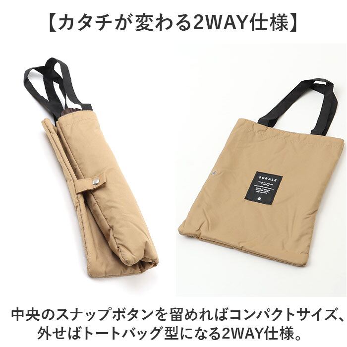 ・中央のスナップボタンを留めればコンパクトサイズ、外せばトートバッグ型になる2WAY仕様。