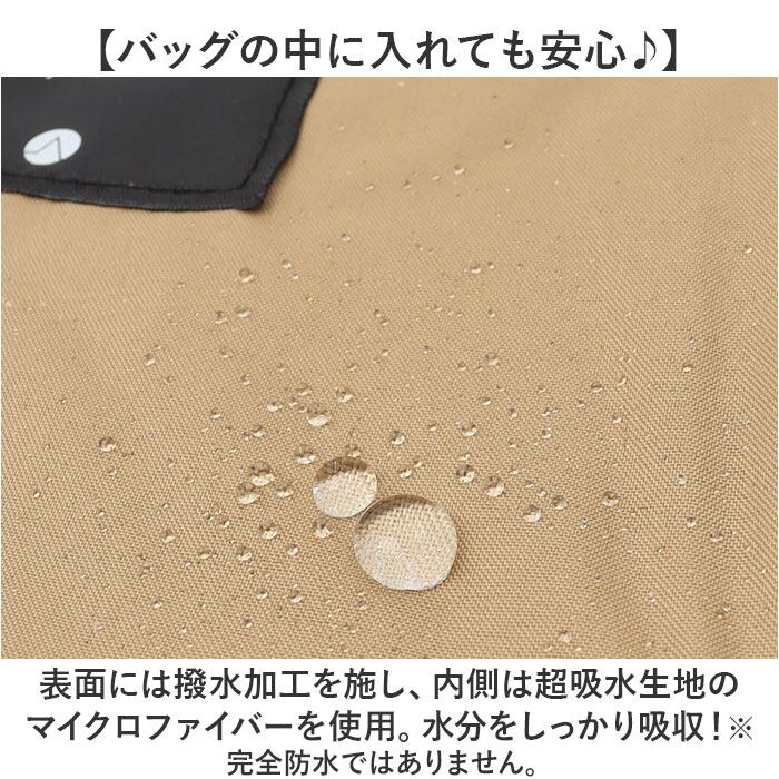 ・表面には撥水加工を施し、内側は超吸水生地のマイクロファイバーを使用。水分をしっかり吸収!