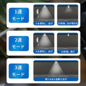 ・人感センサーの他、光センサーもあり暗くなると自動で点灯してくれるのもポイント。