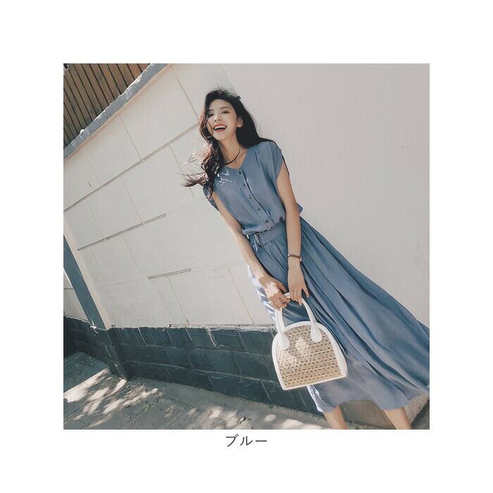 Vネックワンピース ノースリーブ mmsvd25c