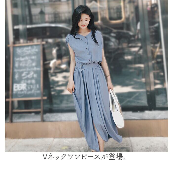 【シンプルな着こなしで大人可愛く♪】Vネックワンピースが登場。