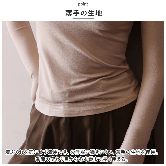 ・着ぶくれを気にせず着用でき、お洋服に響きにくい、薄手の生地を使用。季節の変わり目から冬本番まで長く使える。