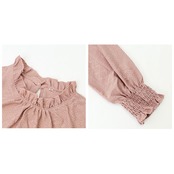 ・襟のフリルと袖口のシャーリングが可愛いデザイン☆単品使いはもちろん、ワンピースやジャンスカ等と合わせて使うのもGOOD。