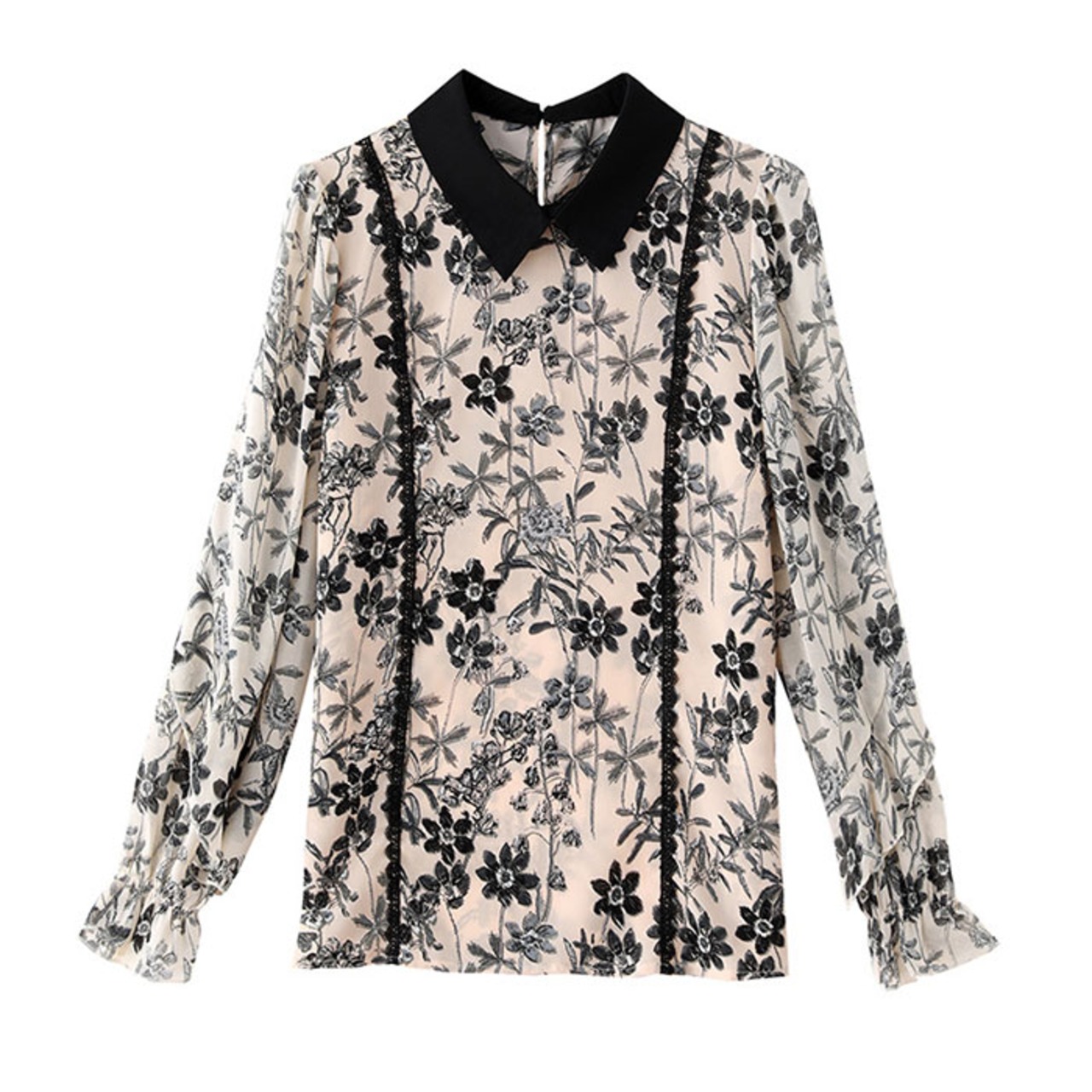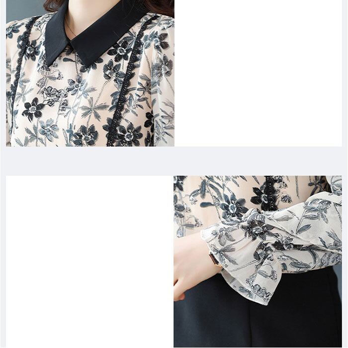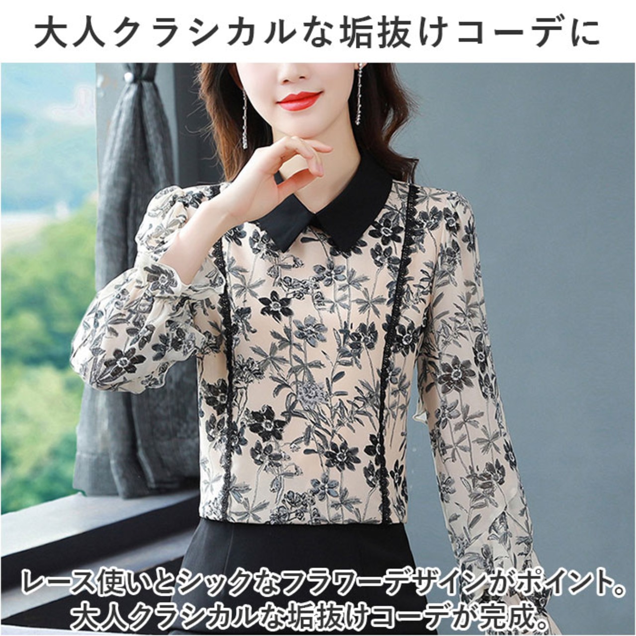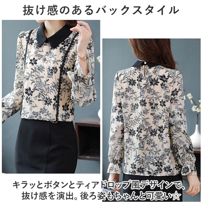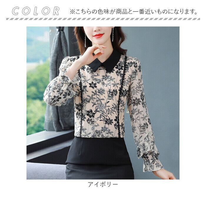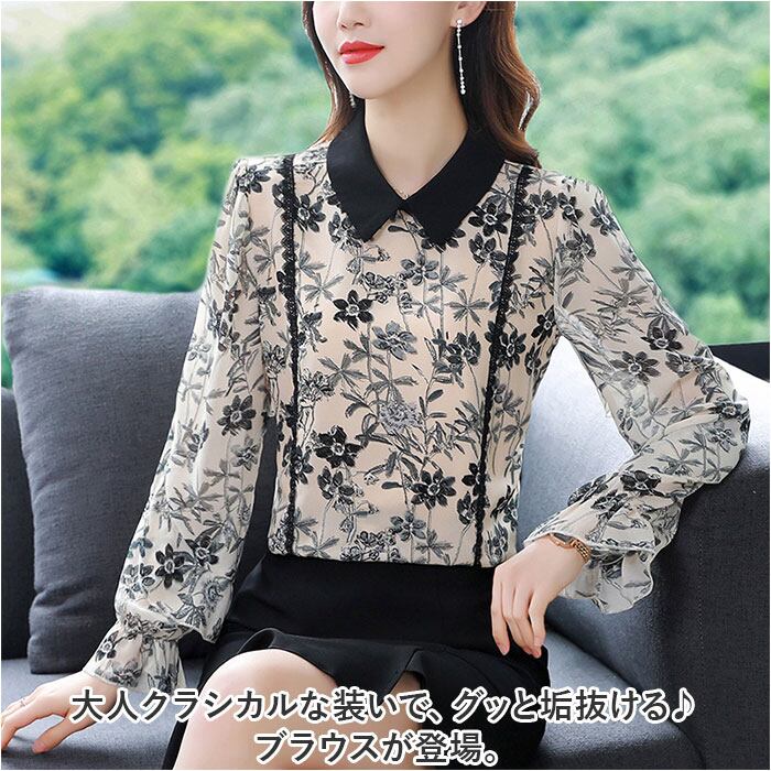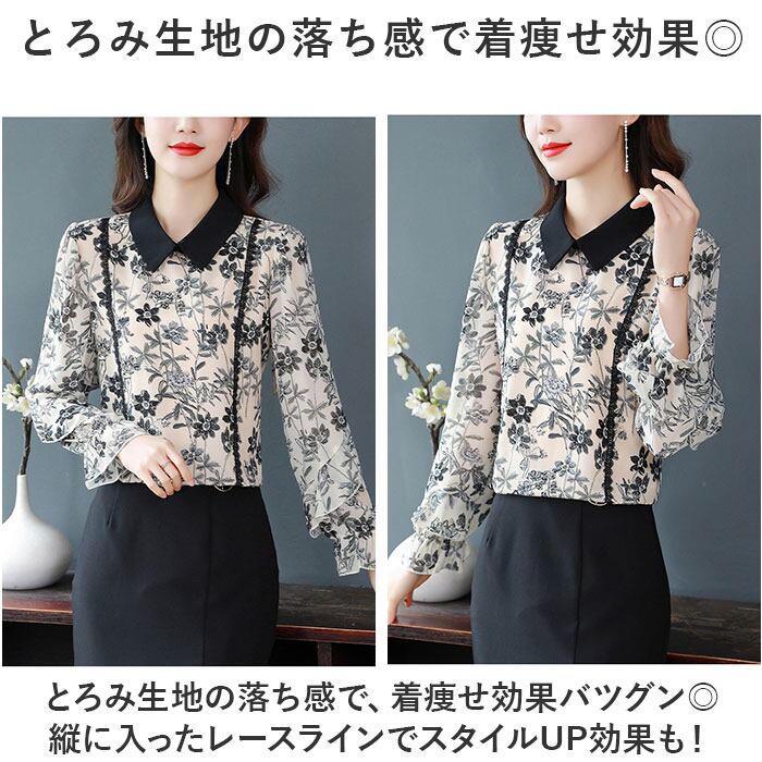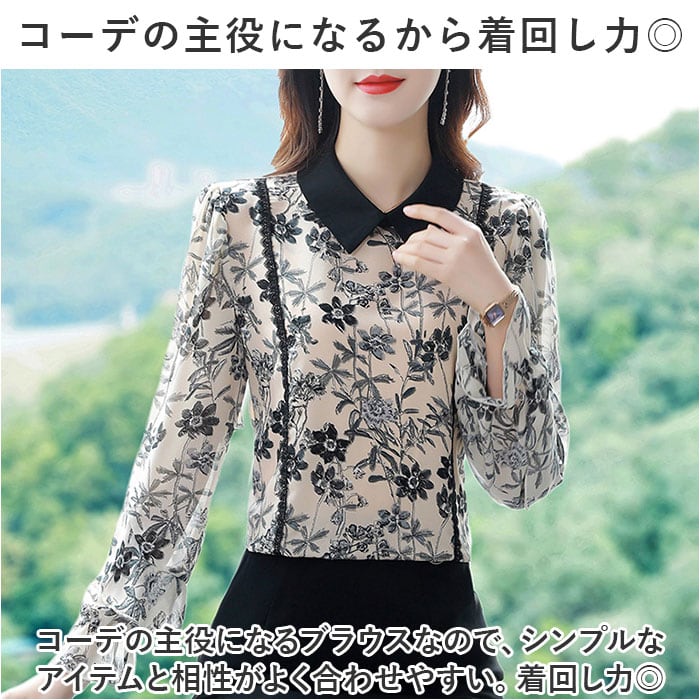 ブラウス シャツ 長袖 レディース 通販 トップス プルオーバー レース 花 フラワー フリル 透け感 通勤 通学 オフィス カジュアル お呼ばれ フォーマル 上品 きれいめ 春 夏 秋 かわいい カワイイ おしゃれ オシャレ