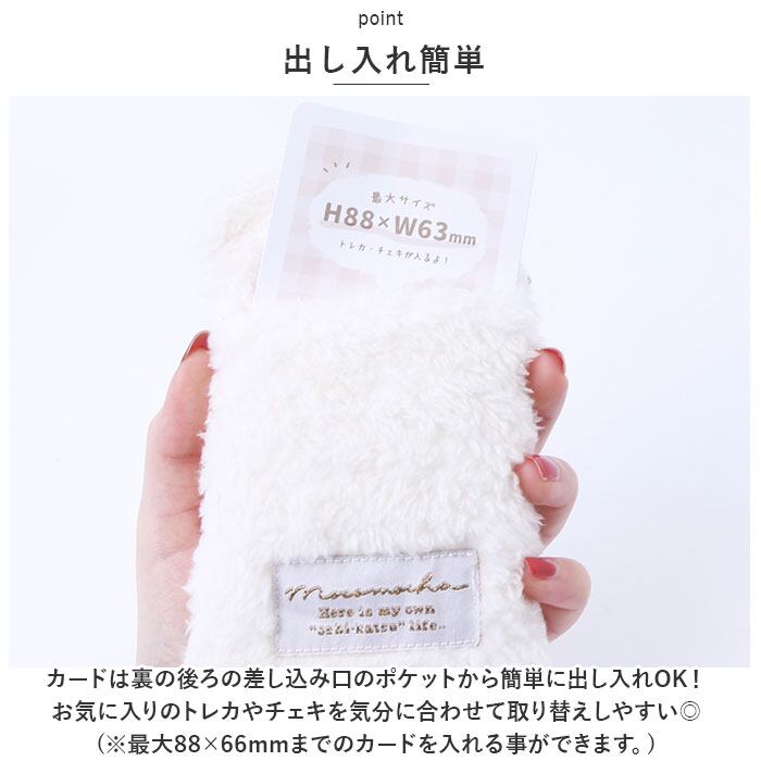 ・カードは裏の後ろの差し込み口のポケットから簡単に出し入れOK!お気に入りのトレカやチェキを気分に合わせて取り替えしやすい◎(※最大88×66mmまでのカードを入れる事ができます。)