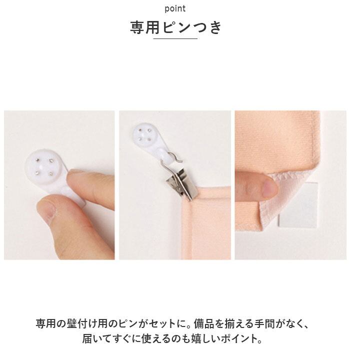 ・専用の壁付け用のピンがセットに。備品を揃える手間がなく、届いてすぐに使えるのも嬉しいポイント。