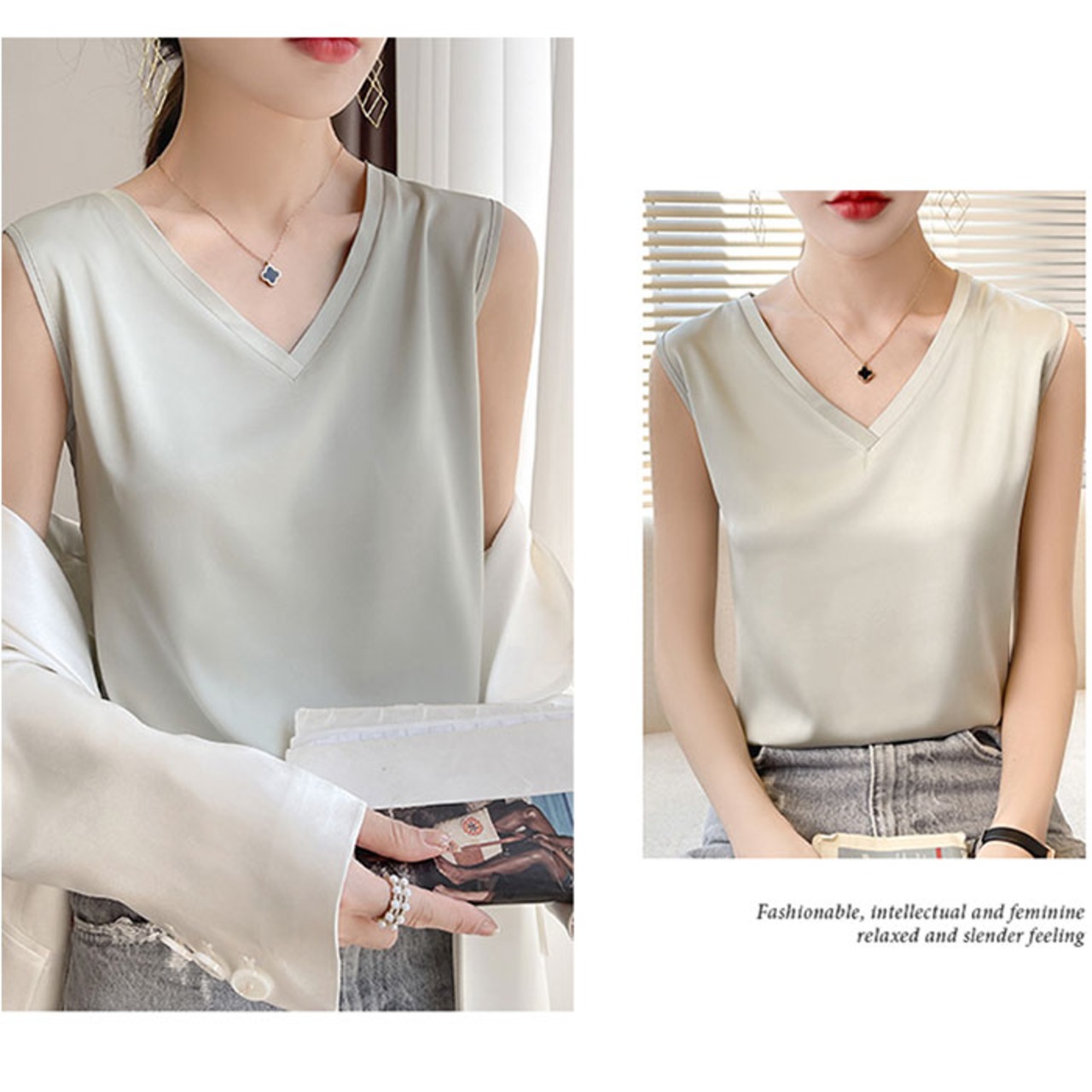 ・シンプルながら、リッチな印象に♪「Vネック タンクトップ」が新登場。