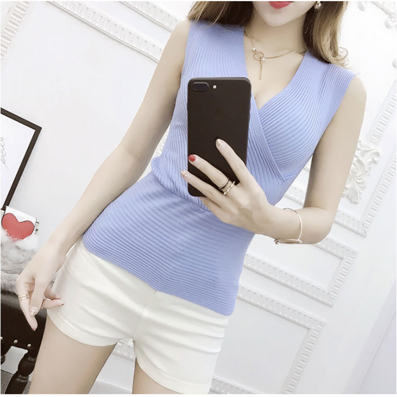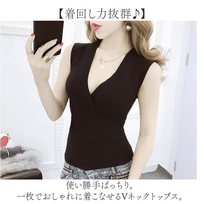 Vネックトップス ノースリーブ mmvtn25e