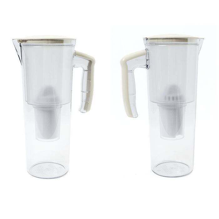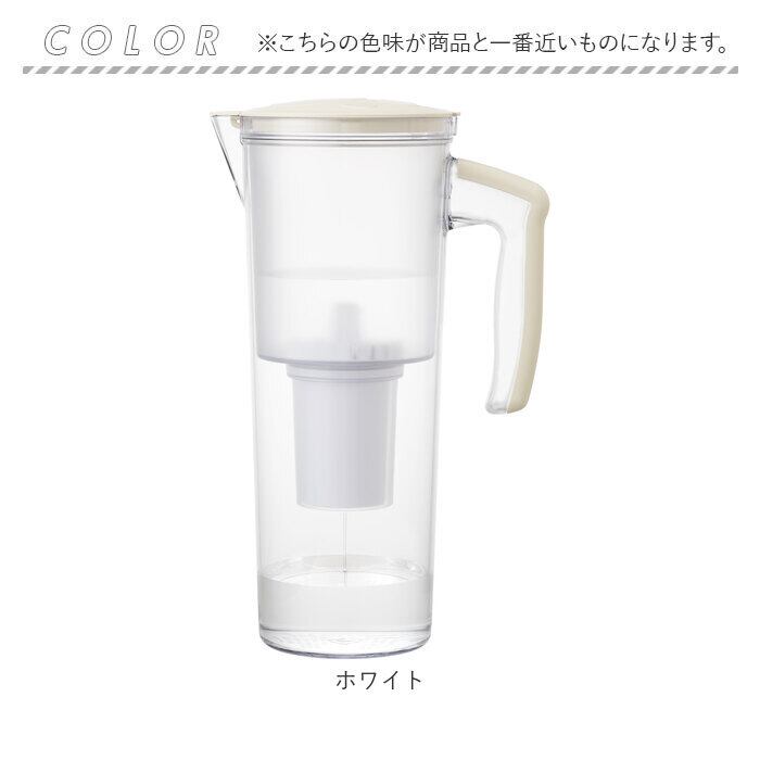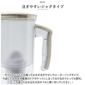 ・サイドのハンドルを握ってお水が注ぎやすいウォータージャグタイプ。ろ過したお水を冷蔵庫のドアポケットにしまっておけるのでとっても便利。(※ろ過したお水はその日のうちに使い切ってください。)