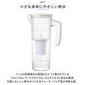 ・ペットの尿路結石の原因のひとつと言われている「カルシウム」や「マグネシウム」などのミネラル成分を軽減。手軽においしい軟水がつくれるウォータージャグ型の浄軟水器。