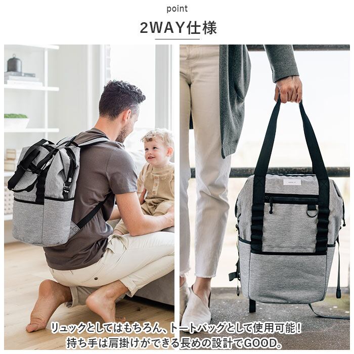 ・荷物がたくさん入るママバッグ・リュックは可愛いデザインで使いづらい・・・そんなパパさんにもおススメ。ベーシックなカラーでユニセックスで使えるのが魅力的♪