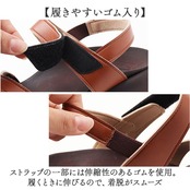 ・ストラップの一部には伸縮性のあるゴムを使用。履くときに伸びるので、着脱がスムーズ