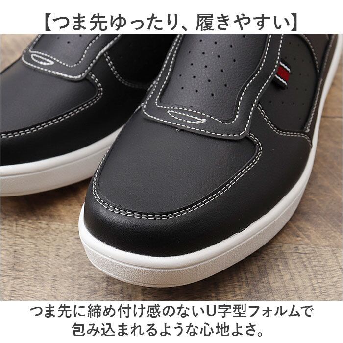 ・靴ひもを結ぶ手間がないスリッポンタイプのシューズ。サッと履けるのがポイント。