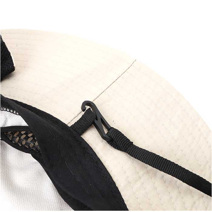 ・取り外し可能なあご紐付き。ドローコードで調節でき、吹き飛ばされることなく迷子知らず。
