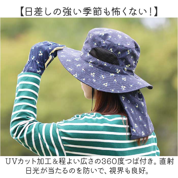 ・日差しをガードして頭や首元を守る!UVカット帽子「サファリハット」。