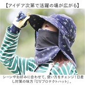 ・シーンやお好みに合わせて、使い方をチェンジ!日差し対策の味方「UVプロテクトハット」。