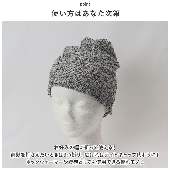 ・お好みの幅に折って使える!前髪を押さえたいときは3つ折り、広げればナイトキャップ代わりに!ネックウォーマーや腹巻としても使用できる優れモノ☆