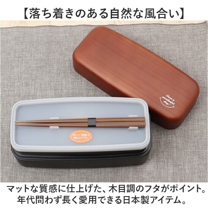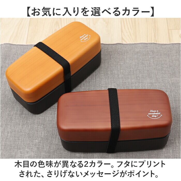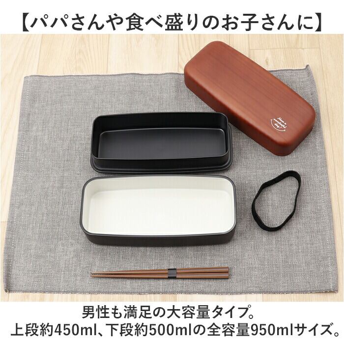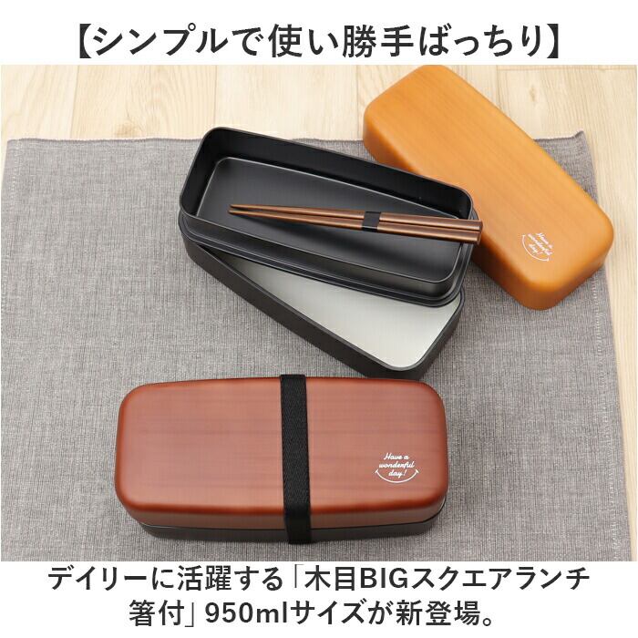 お弁当箱 2段 お箸付き 通販 ランチボックス おしゃれ 弁当箱 男子 大容量 二段 女子 大人 男性 高校生 中学生 電子レンジ対応 食洗機対応 大人用弁当箱 木目BIGスクエアランチ箸付 950ml プラスチック製 弁当用品 お弁当グッズ キッチン用品