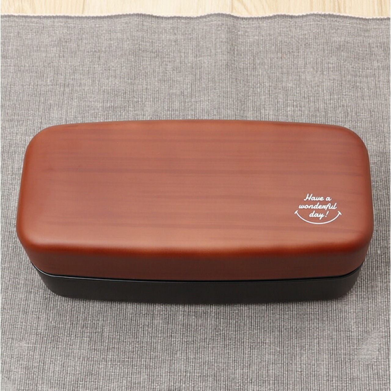 ・木目の色味が異なる2カラー。フタにプリントされた、さりげないメッセージがポイント。