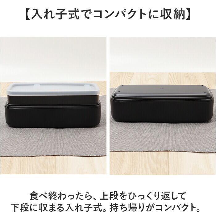 ・食べ終わったら、上段をひっくり返して下段に収まる入れ子式。持ち帰りがコンパクト。