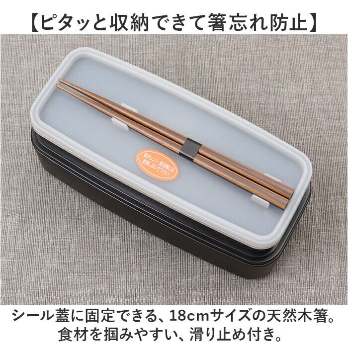 ・シール蓋に固定できる、18cmサイズの天然木箸。食材を掴みやすい、滑り止め付き。
