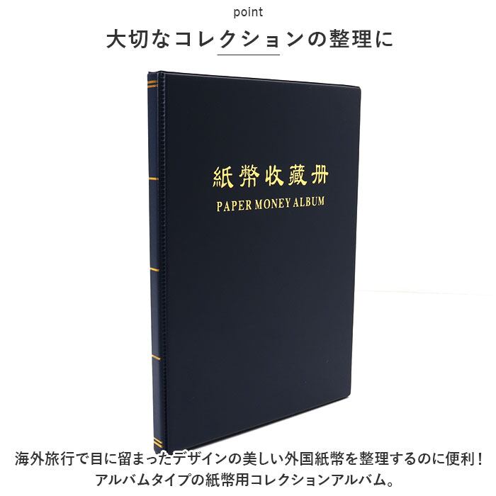 ・海外旅行で目に留まったデザインの美しい外国紙幣を整理するのに便利!アルバムタイプの紙幣用コレクションアルバム。