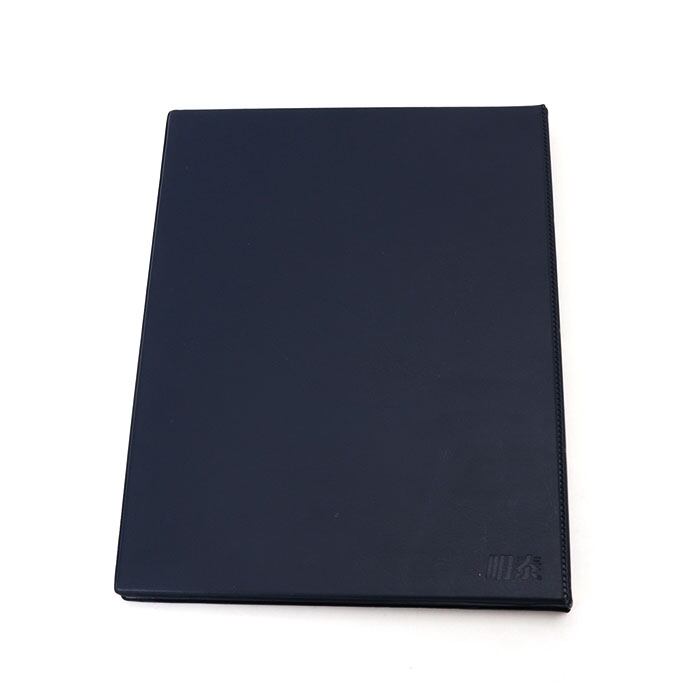 ・汚れや水滴がサッと拭き取れる丈夫なフェイクレザーに、ゴールドの箔押しロゴをプリントしたスタイリッシュな装丁も魅力のひとつ。