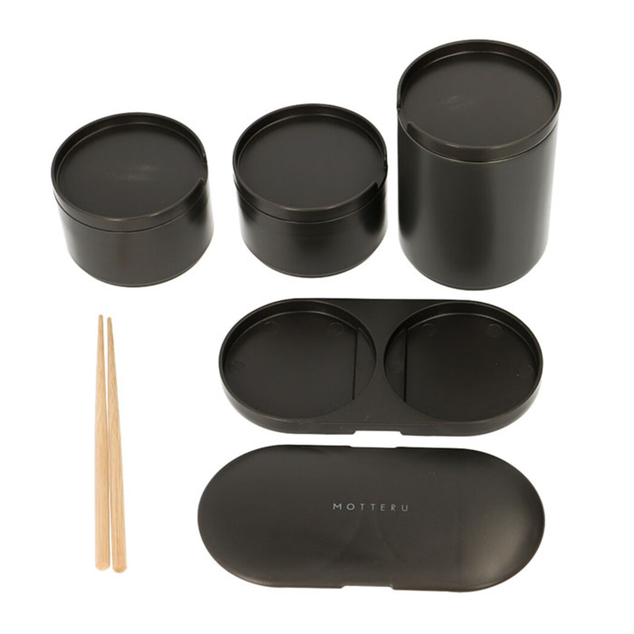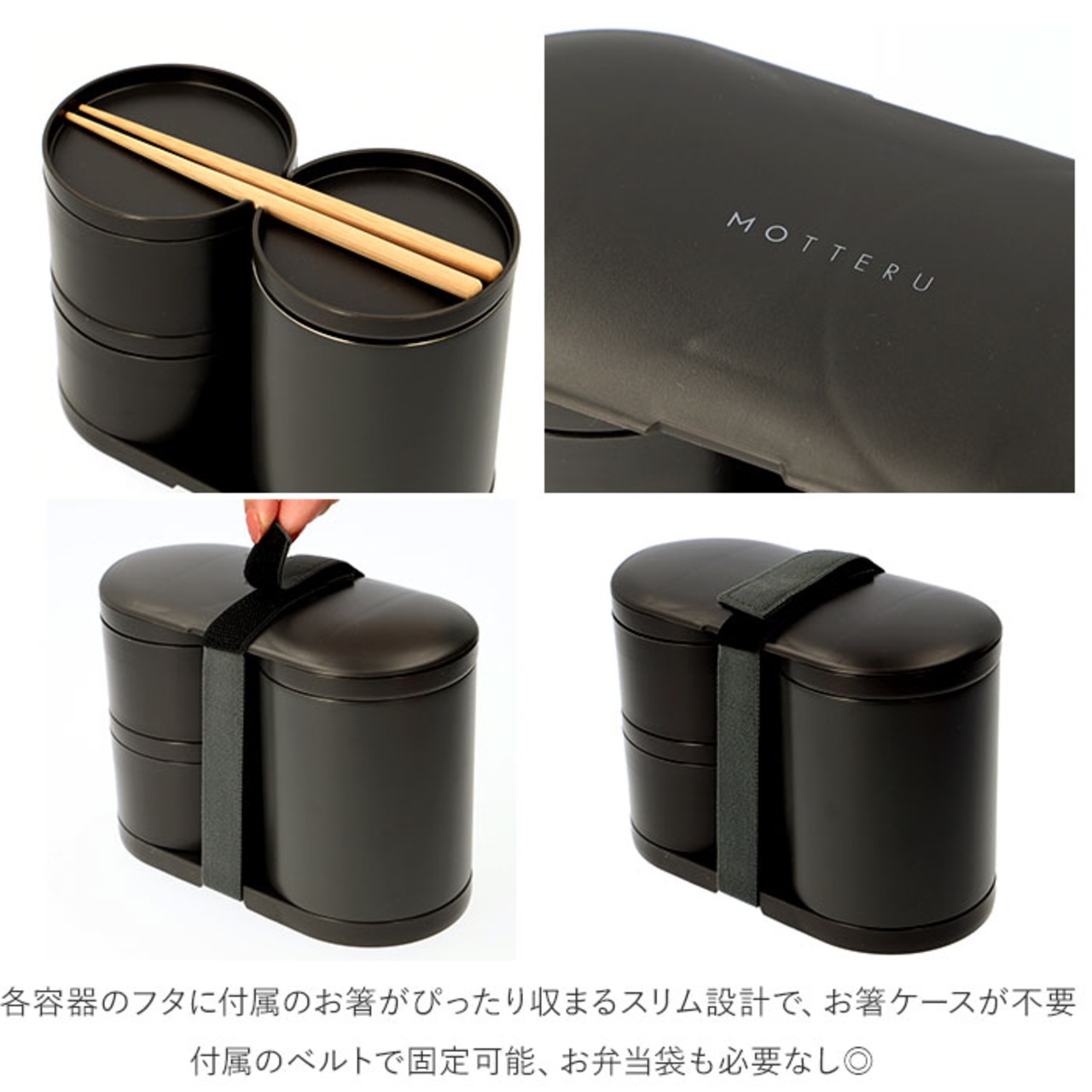 ・各容器のフタに付属のお箸がぴったり収まるスリム設計で、お箸ケースが不要。