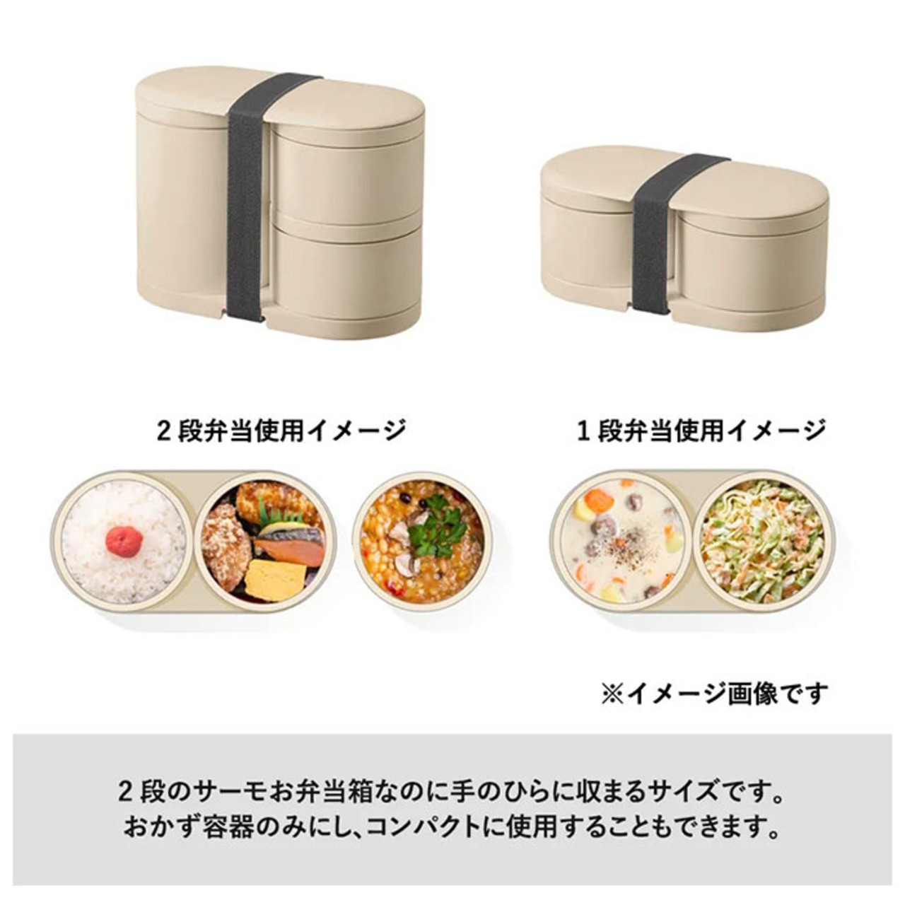 ・容量300mlのご飯容器×1、容量150mlのおかず容器×2。ご飯とおかずを分けて入れられる!
