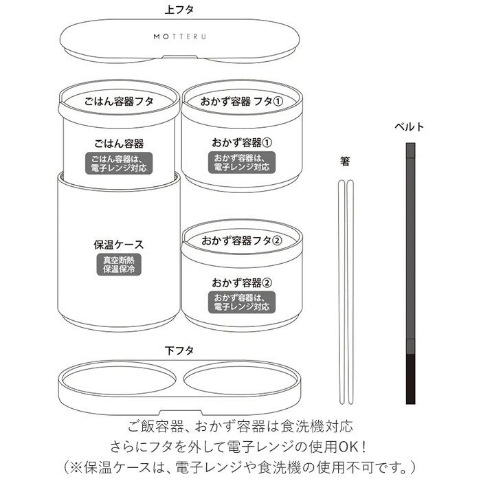 ・ご飯容器、おかず容器は食洗機対応。さらにフタを外して電子レンジの使用OK!(※保温ケースは、電子レンジや食洗機の使用不可です。)