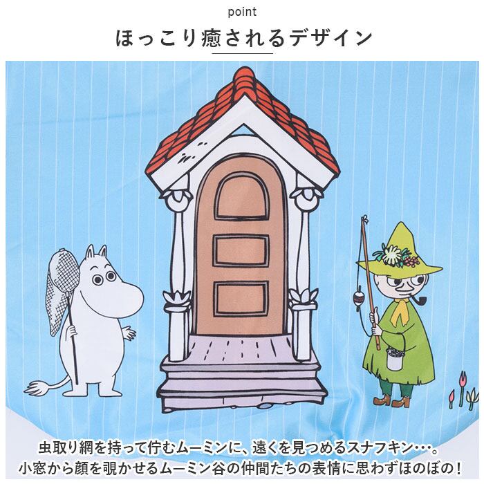 ・虫取り網を持って佇むムーミンに、遠くを見つめるスナフキン・・・。小窓から顔を覗かせるムーミン谷の仲間たちの表情に思わずほのぼの!