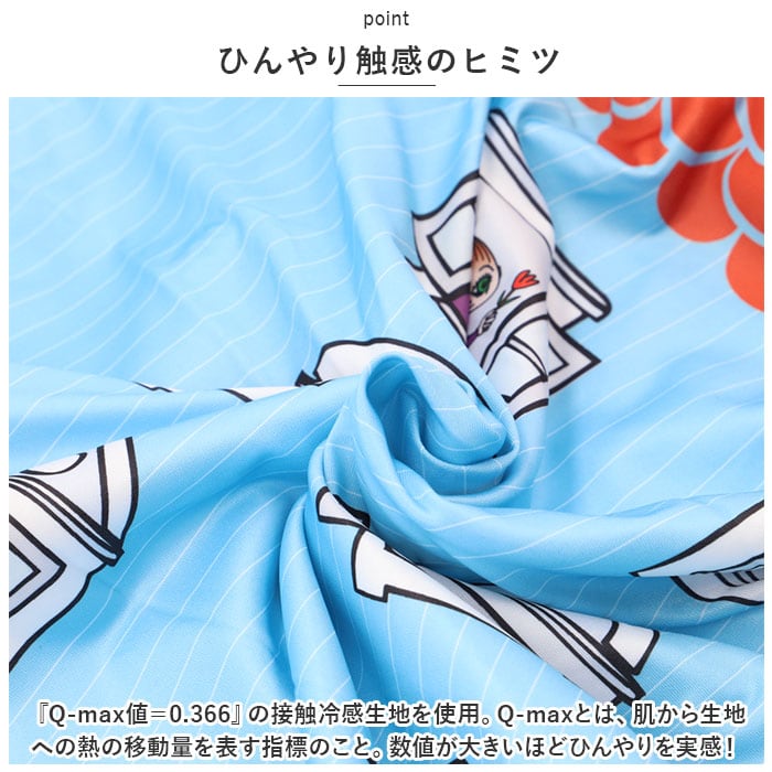 ・『Q-max値=0.366』の接触冷感生地を使用。Q-maxとは、肌から生地への熱の移動量を表す指標のこと。数値が大きいほどひんやりを実感!