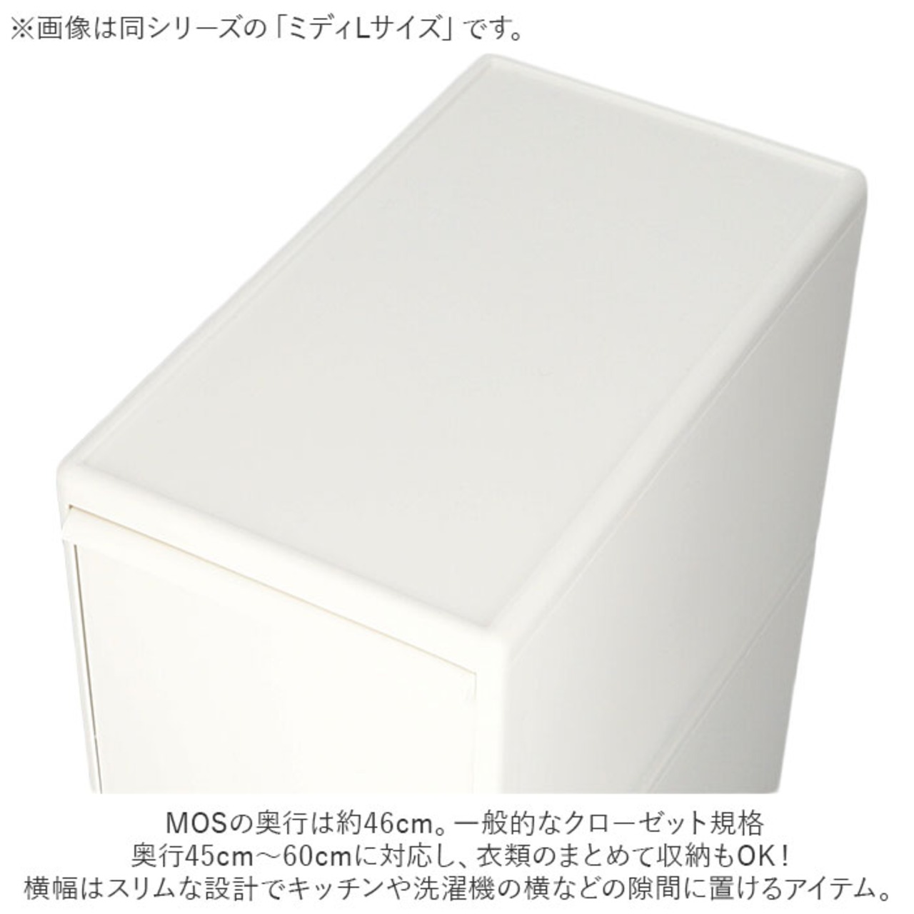 ・MOSの奥行は約46cm。一般的なクローゼット規格奥行45cm~60cmに対応し、衣類のまとめて収納もOK!