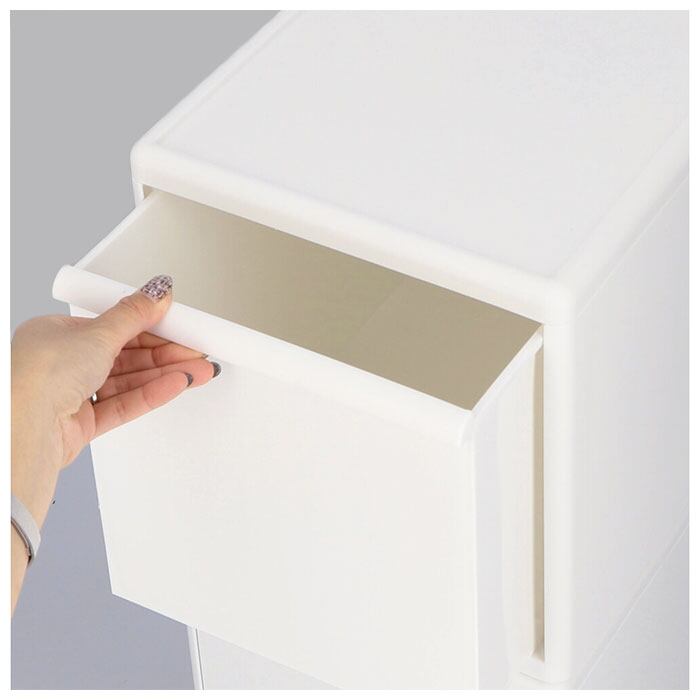 ・オールホワイトカラーを採用し、中身が見えないのもポイント!洗剤などのストックを入れても生活感が出にくいのが嬉しい。