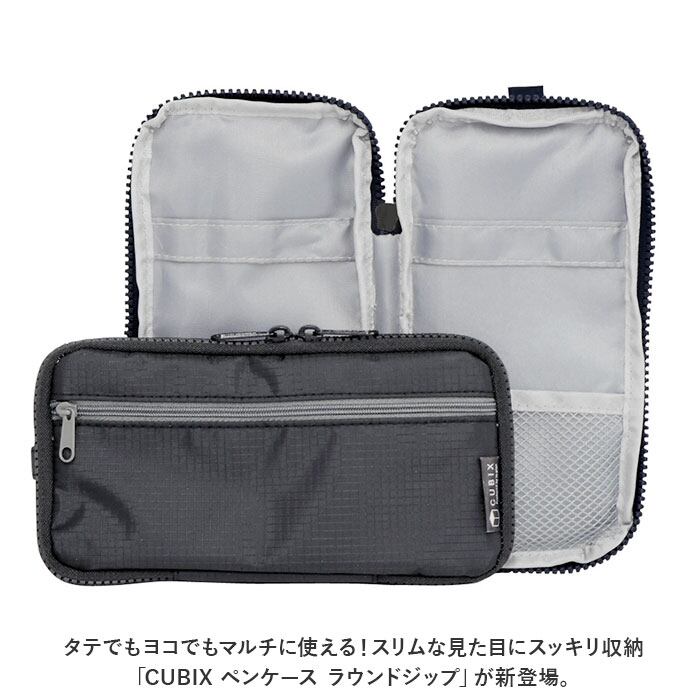 ・タテでもヨコでもマルチに使える!スリムな見た目にスッキリ収納「CUBIX ペンケース ラウンドジップ」が新登場。