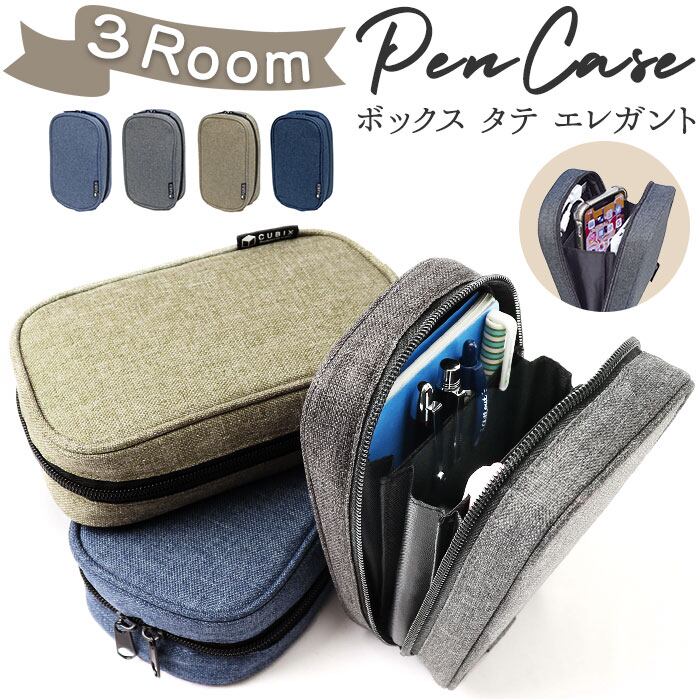・3つに仕切られたポケットで、誰でも収納上手さんに♪シンプルでマルチに使える「CUBIX ペンケース ボックス タテ エレガント」が新登場!