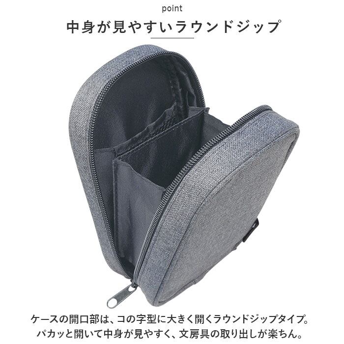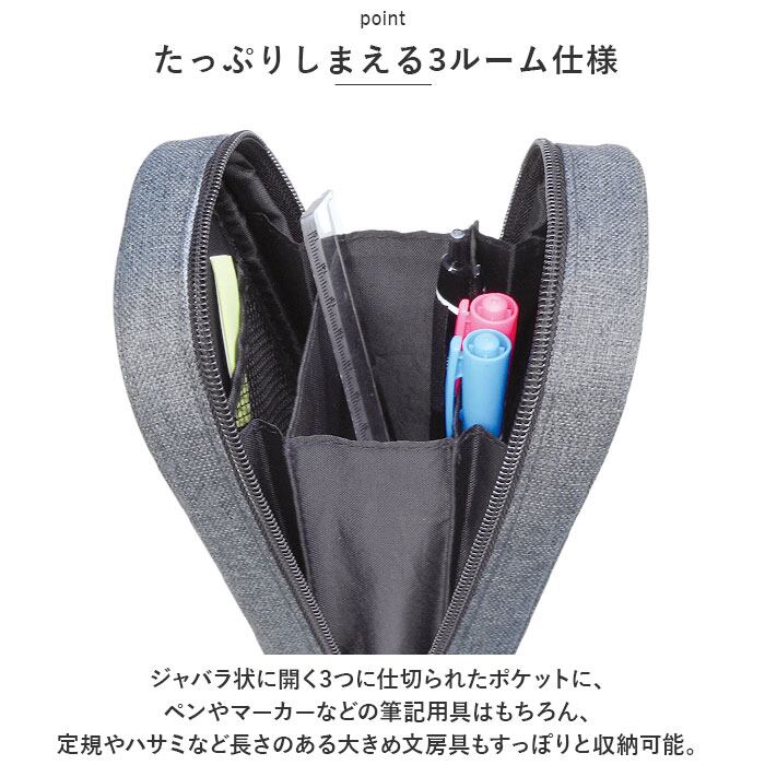 ・ケースの開口部は、コの字型に大きく開くラウンドジップタイプ。パカッと開いて中身が見やすく、文房具の取り出しが楽ちん。