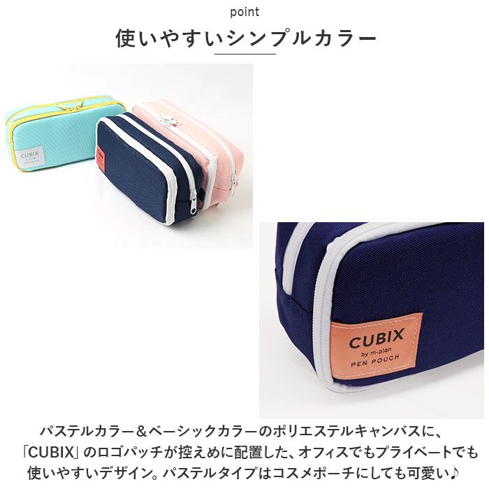 ・パステルカラー&ベーシックカラーのポリエステルキャンバスに、「CUBIX」のロゴパッチが控えめに配置した、オフィスでもプライベートでも使いやすいデザイン。パステルタイプはコスメポーチにしても可愛い♪