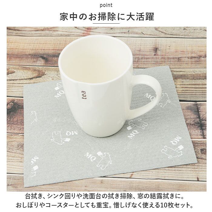 ・台拭き、シンク回りや洗面台の拭き掃除、窓の結露拭きに。おしぼりやコースターとしても重宝。惜しげなく使える10枚セット。