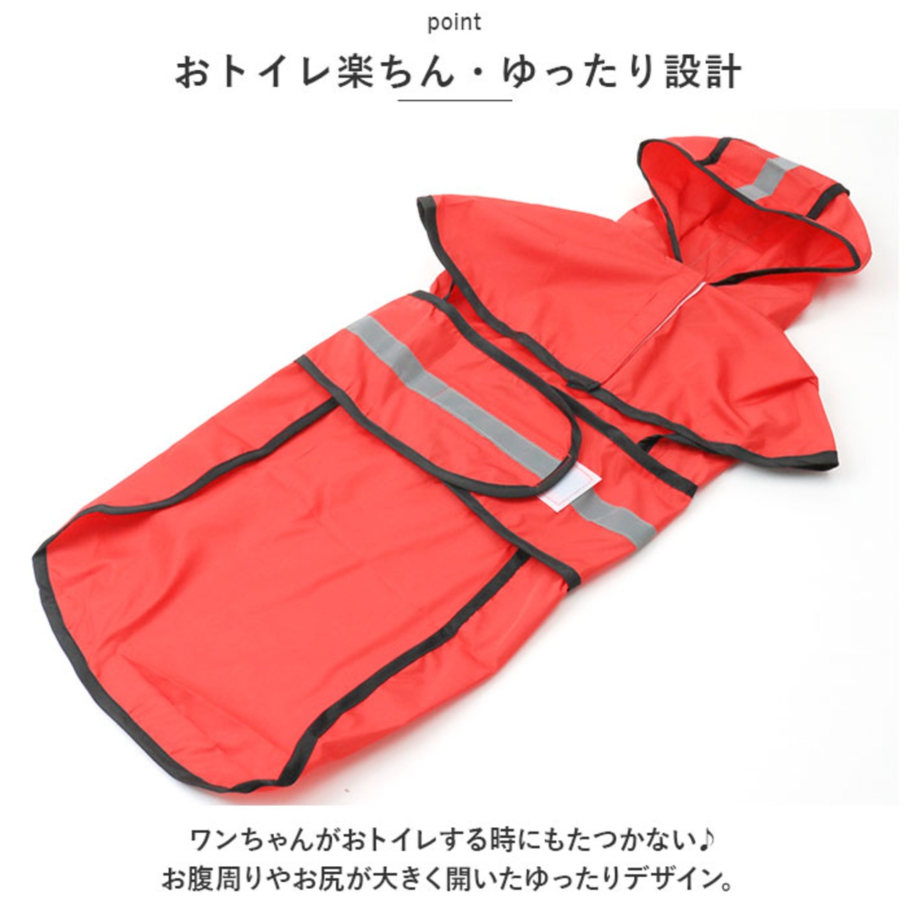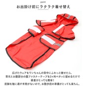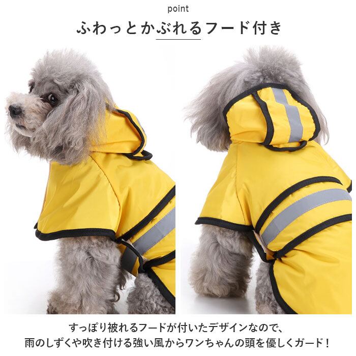 ・すっぽり被れるフードが付いたデザインなので、雨のしずくや吹き付ける強い風からワンちゃんの頭を優しくガード!