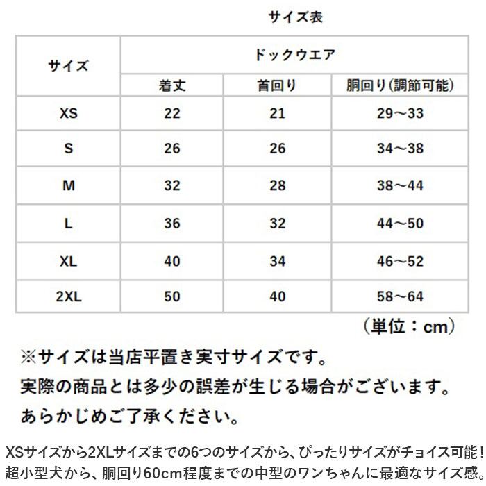 ・XSサイズから2XLサイズまでの6つのサイズから、ぴったりサイズがチョイス可能!超小型犬から、胴回り60cm程度までの中型のワンちゃんに最適なサイズ感。