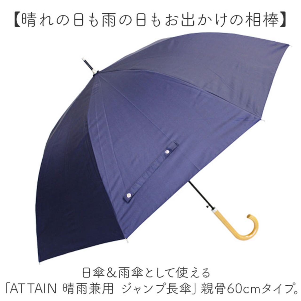 ・日傘&雨傘として使える「ATTAIN 晴雨兼用 ジャンプ長傘」親骨60cmタイプ。