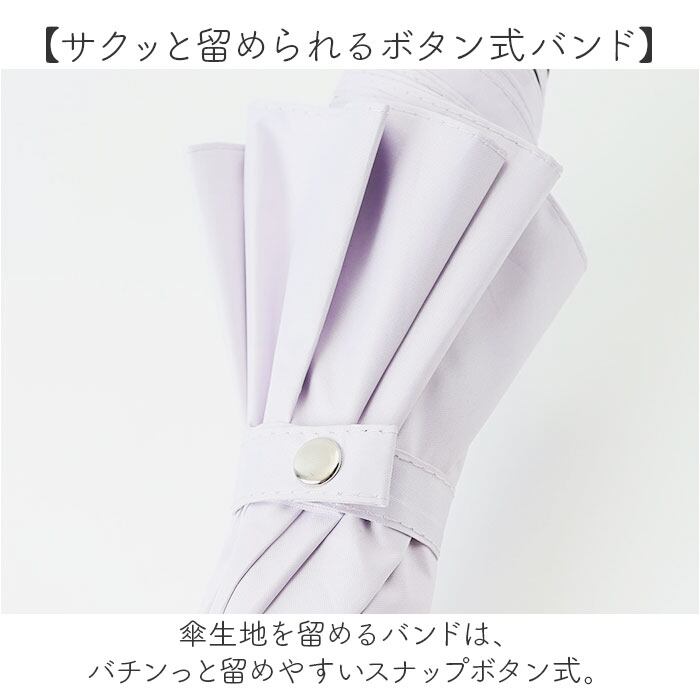 ・傘生地を留めるバンドは、バチンっと留めやすいスナップボタン式。