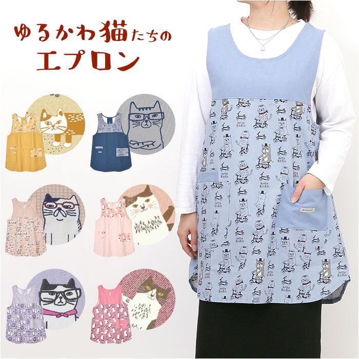 エプロン おしゃれ 通販 猫 ねこ ネコ レディース 着脱が簡単 ポケット シンプル 無地 機能的 動きやすい キッチンファブリック キッチン雑貨 かわいい 保育士 介護士 母の日 家事 料理 KUSUGURU-JP クスグルジャパン ギフト 贈り物