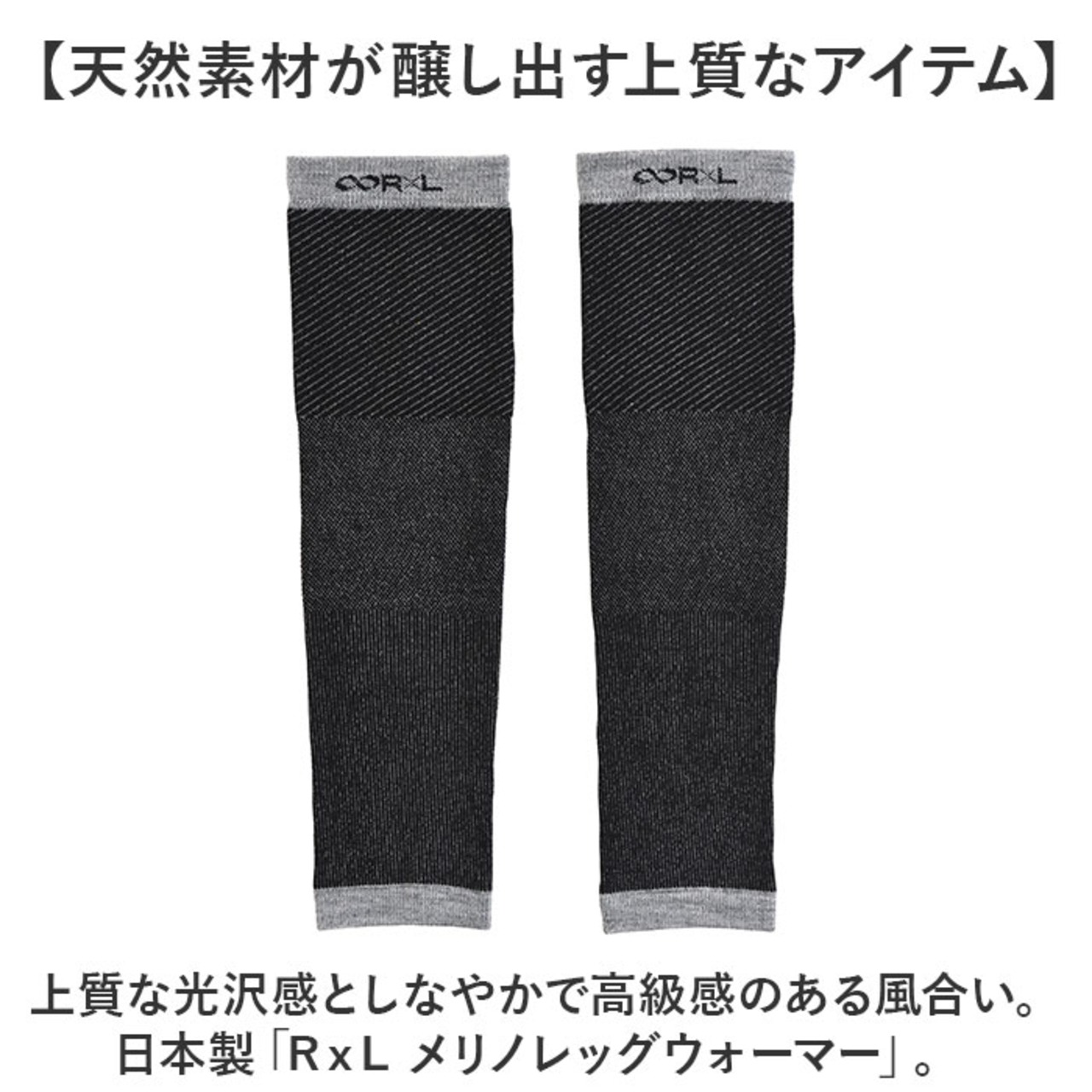 ・上質な光沢感としなやかで高級感のある風合い。日本製「RxL メリノレッグウォーマー」。
