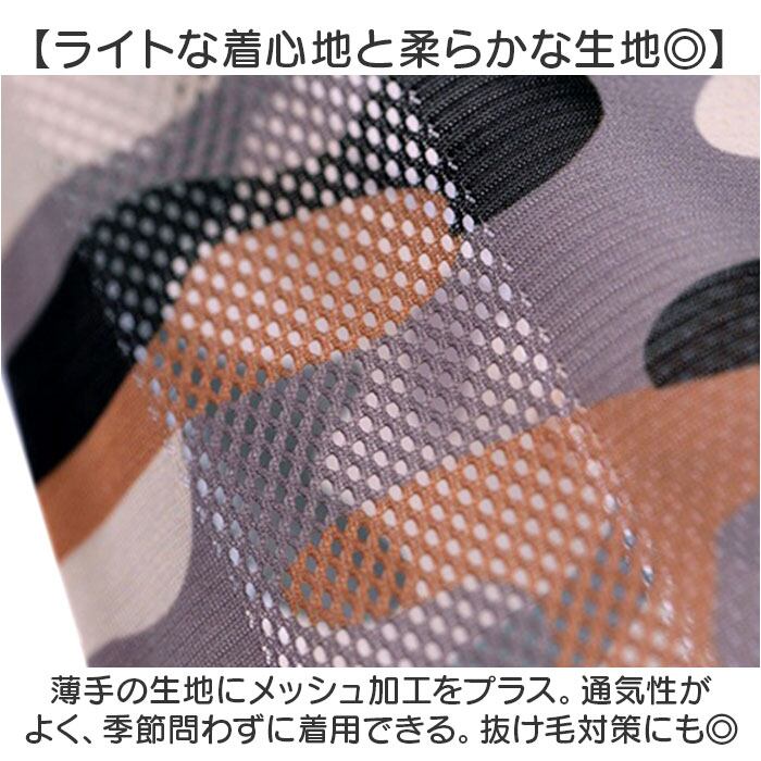 ・薄手の生地にメッシュ加工をプラス。通気性がよく、季節問わずに着用できる。抜け毛対策にも◎