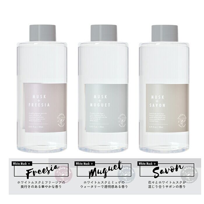 ・甘く爽やかな、どこか懐かしく優しいホワイトムスクの香りに、上品で現代的な女性らしい香りをmore(プラス)して調和した香りをラインナップ!