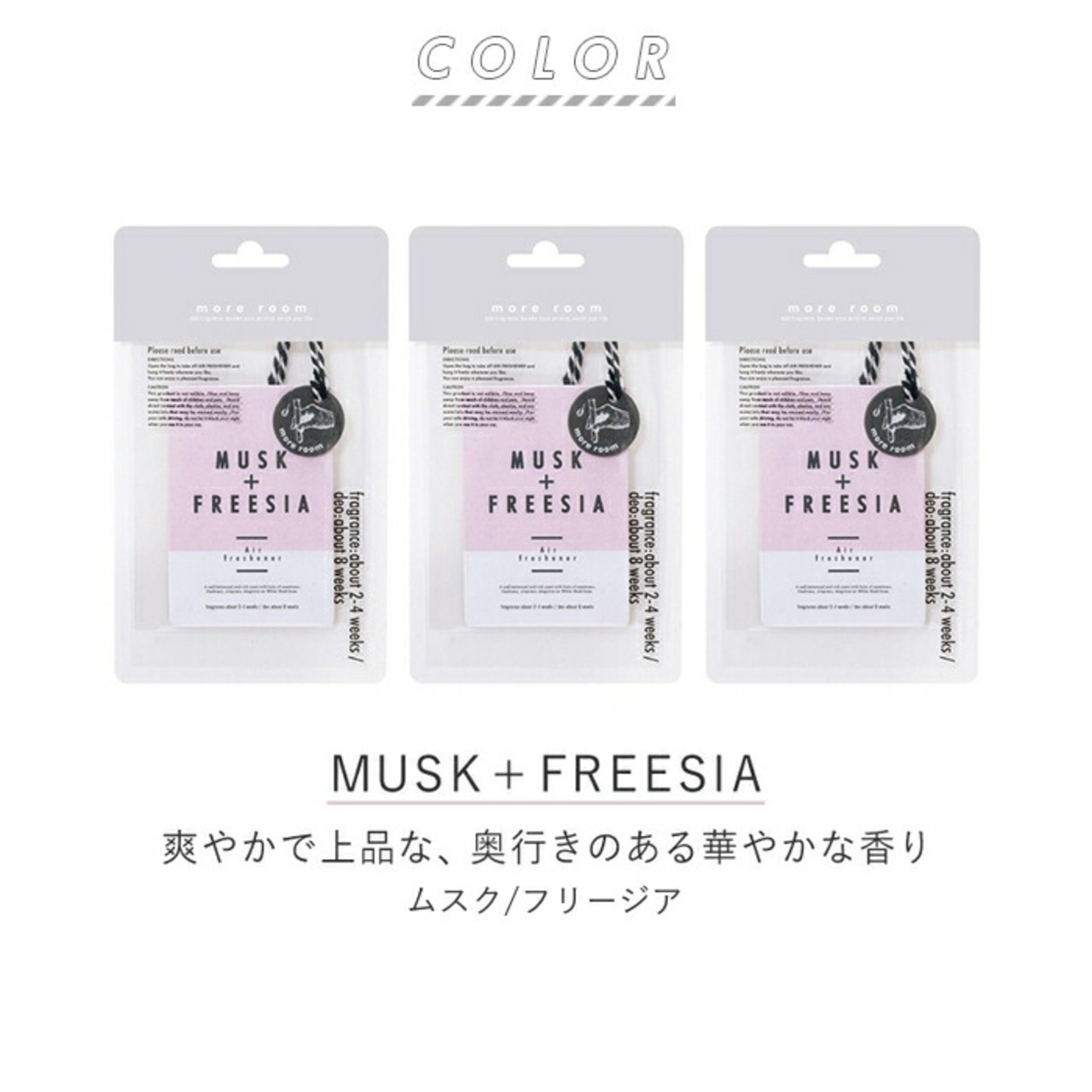 モアルーム エアーフレッシュナー 3枚セット 通販 more room エアフレッシュナー 芳香剤 消臭剤 ホワイトムスク 部屋 室内 リビング 寝室 玄関 トイレ 車 車内 吊り下げ インテリア 消臭 芳香 おしゃれ シンプル ナチュラル ルームフレグランス MRM07 3個 日用消耗品
