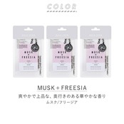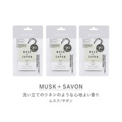 ・香りのタイプは3種類。爽やかで上品な、奥行きのある華やかな香りの「ムスク/フリージア」・みずみずしい、ウォータリーで透明感のある香りの「ムスク/ミュゲ」・洗いたてのリネンのような心地よい香りの「ムスク/サボン」。