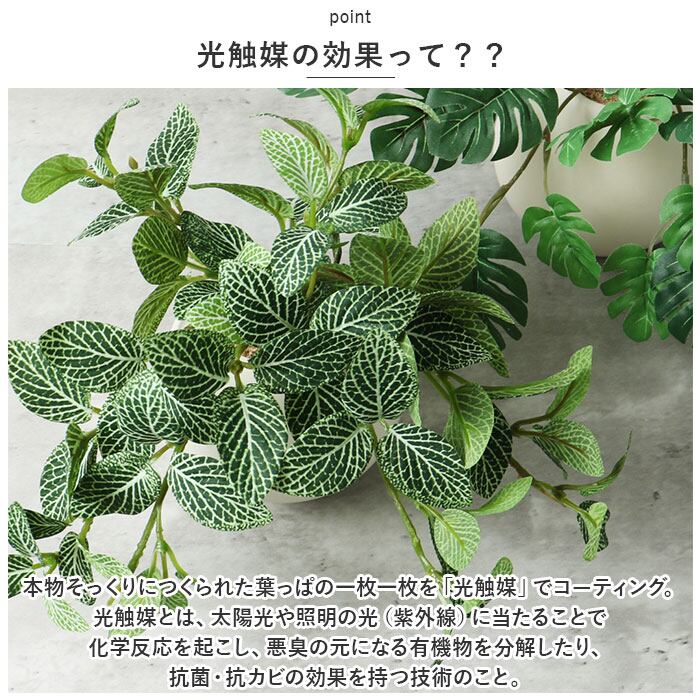 ・「光触媒MRポット」は、インテリアとして飾っておくだけで「消臭・抗菌・防カビ」の効果が期待できる、オシャレで機能的なフェイクグリーン。